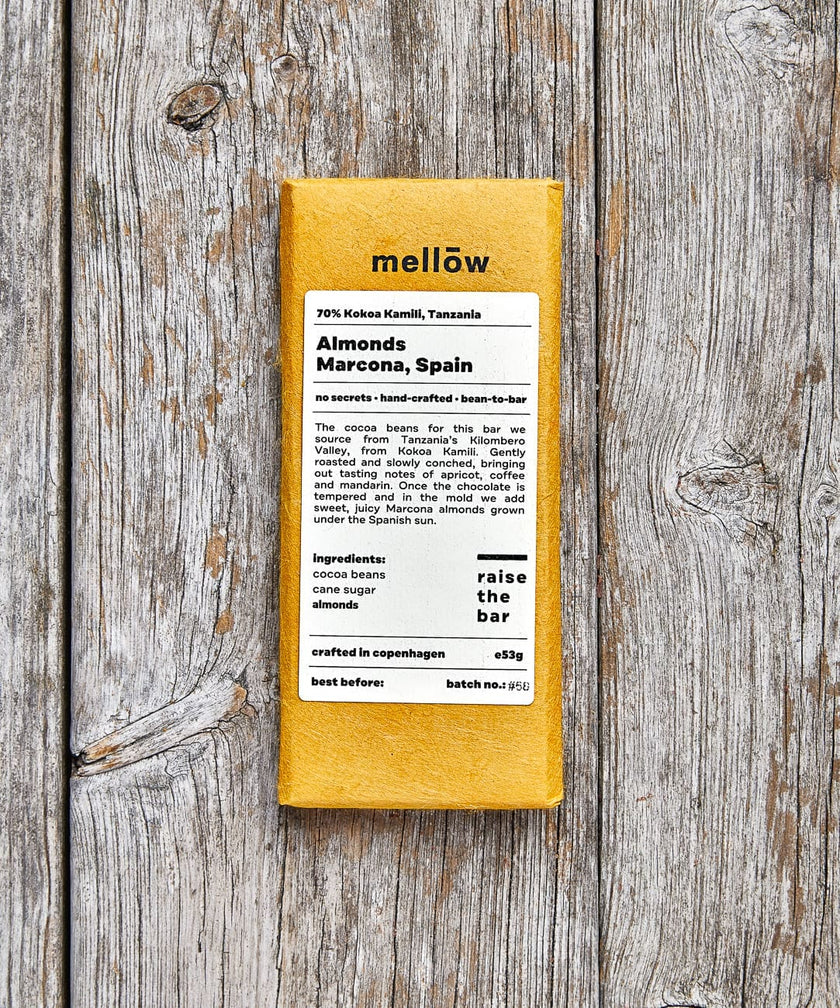 Prøv Mellows mest elskede barer i en miniform og forelsk dig i Mellow Chocolate. Fra den specielle to-ingrediens bar fra Kokoa Kamili (Tanzania) til de klassiske kombinationer som mandler eller kaffe og de specielle olivenolie- og havsaltbarer. Her kan du dykke dybt ned i Mellow-chokoladeoplevelsen og selv bestemme dine varianter.